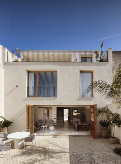 La intervención transforma un antiguo edificio en el centro de Montuïri, reorganizando sus espacios para adaptarlos a una forma de habitar más contemporánea. En planta baja, la reforma establece una conexión directa, física y visual, con el patio posterior, donde se incorpora una piscina. En la primera planta se distribuyen tres habitaciones dobles, mientras que la segunda acoge un dormitorio adicional y una azotea con vistas a la Serra de Tramuntana.